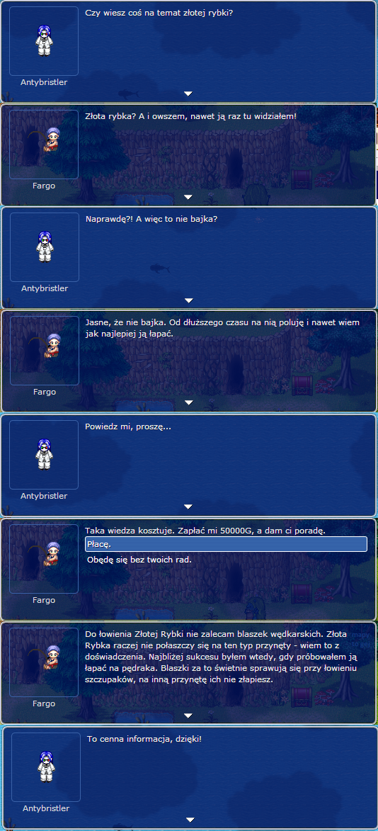 Informacja od NPC Feliks za sumę 50.000 G udzieli nam informacji dot. złowienia Złotej Rybki
