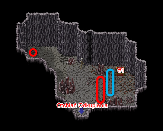 - CZERWONE miejsca teleportują do innych współrzędnych w lokacji Otchłań Odkupienia.
