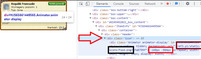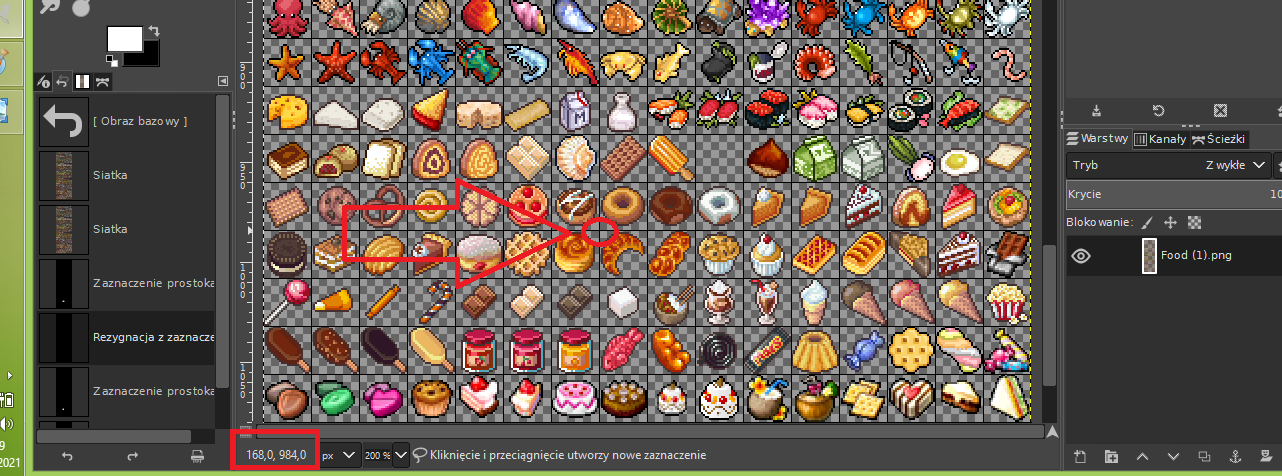 Czerwony prostokąt to współrzędne potrzebnego rogalika (o tym w dalszej części tego poradnika)