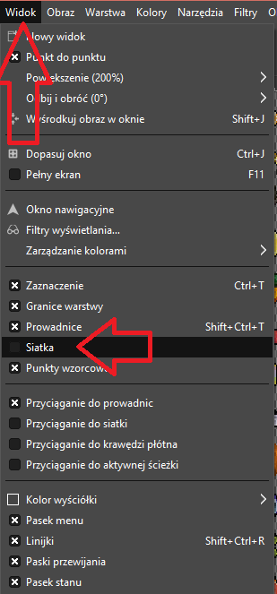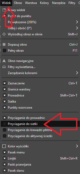 Następnie wybieramy "Widok" > "Przyciąganie do siatki"