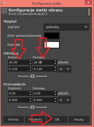 W pola zaznaczone strzałkami w dół wpisujemy "24" (taka jest właśnie wysokość i szerokość przedmiotów w mfo)