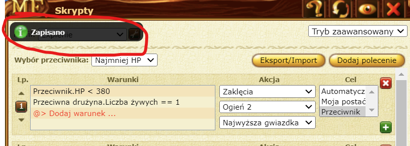 Posiadam 3 skrypty - Balance, Mag oraz Woj (wiadomo o co chodzi :p). Zmieniając pewne warunki w skrypcie, zmiany zapisuje się tylko i wyłącznie na tym jednym. W momencie kiedy chciałbym exportować, a potem importować skrypt do innego profilu, ponieważ chciałbym mieć to samo w każdym, przy kliknięciu przycisku "Zapisz", pojawia się komunikat "Zapisano", króry totalnie zasłania opcję "szybszej" zmiany profilu np. z "Mag" na "Woj". Za każdym razem, muszę odczekać coś ok. 3-4s, aby móc zmienić profil na inny - CHYBA ŻE, grałem dużo w CS'a i mam dosyć dobrego cela myszką, żeby kliknąć szybciej "drop down box" przez wyskoczeniem komunikatu (choć, jest to dobry trening na pamięć mięśniową :cool:).