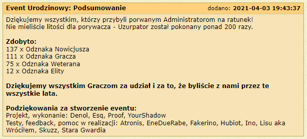 Czy w tym roku pojawi się podsumowanie eventu urodzinowego?