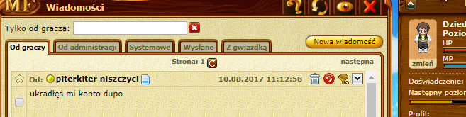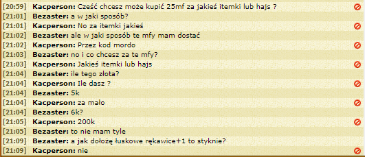 Nie chciało mi się robić screena, ale wysłałem paru osobom rozmowę jak jeszcze udawałem nowego w MFO. Nie miałem nawet tego zgłaszać, ale hipokryzji nie zdzierżę.