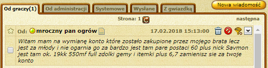 Witam Mam na wymianę konta: Nick Savmon mag 68, Wotan mag 66, Sigrida woj 66 widar mag 44 oraz Sigford woj44 na koncie bankowym Sigford full mf i kasy mój brat kupił te konta 3 lata temmu i mu sie znudzily zamienisz sie za twoje?