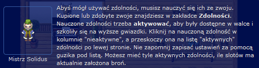 Chciałem już zgłaszać błąd interpunkcyjny w ostatnim zdaniu, natomiast jest to bardziej złożone. Mianowicie w zakładce z uzbrojeniem nie ma opcji "zapisz". Być może to pozostałość po zmianie, trudno mi stwierdzić, jednakże obecnie wygląda to zabawnie.