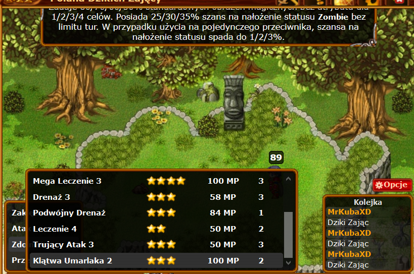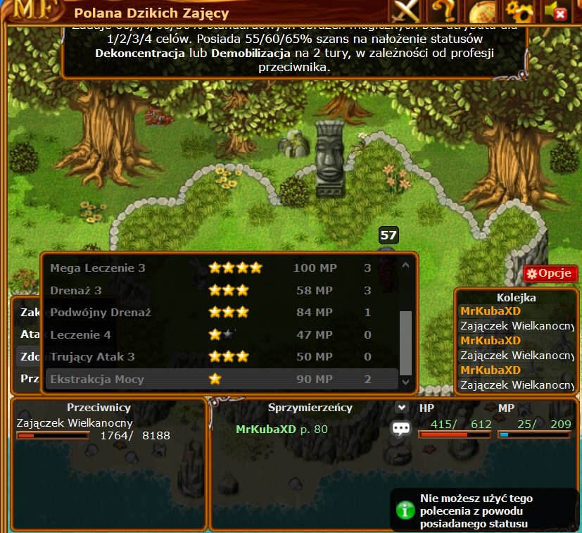 W walkach z potworami nakłada statusy zawsze na 2 turę.