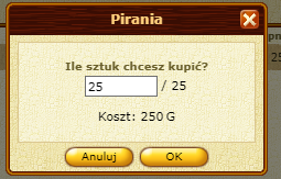 Podczas kupna piranii w klubie wyznawców fortuny za żetony pokazuje cenę zakupu za złoto.