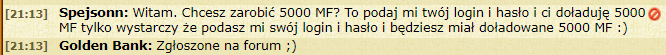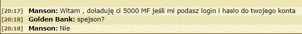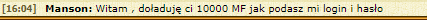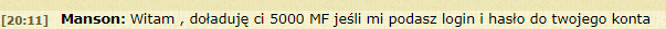 MansonWitam , doładuję ci 5000 MF jeśli mi podasz login i hasło do twojego konta
