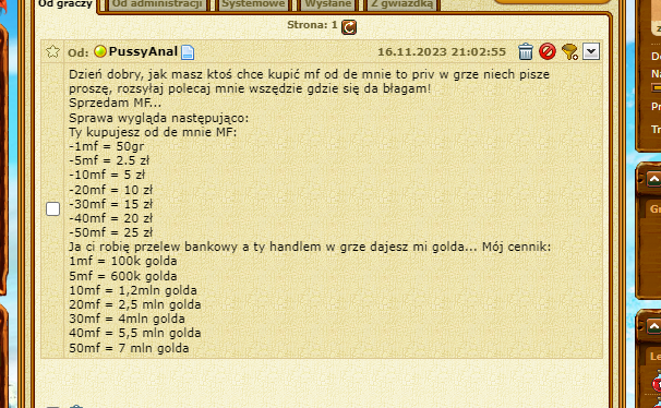 PussyAnalJa bym ci 1 wyslal np 10 zł bankowo a ty mi w grze gold itd na zmianę później ty mi 1 its co transakcje