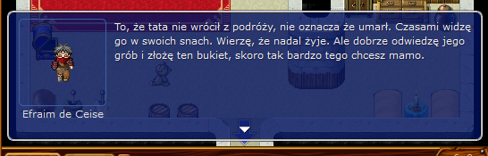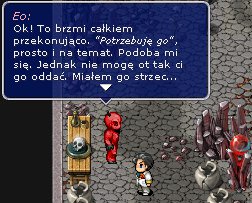 W momencie, gdy pokonujemy Dowódczynię Gildii Wojów, a ona pyta nas o imię, nasz bohater odpowiada, jednak nie ma kropki po podanym nicku.