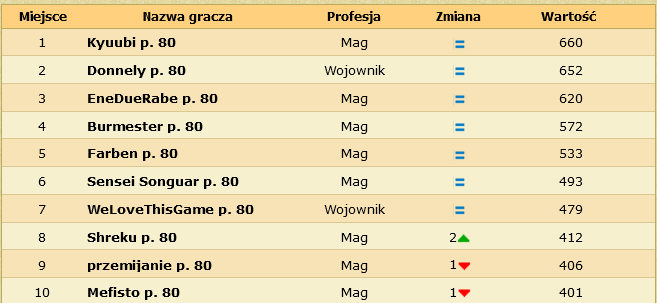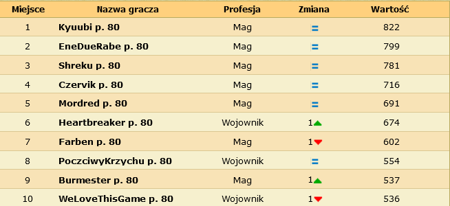 Pamiętacie jak kiedyś był problem z wojem? Oto dzisiejszy ranking. Teraz zamiast wilczych rękawic jest wilcza różdżka. A zamiast klątwy krwi jest potęga szybkości.