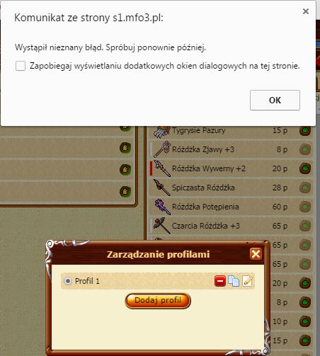 Przy próbie usunięcia ostatniego profilu