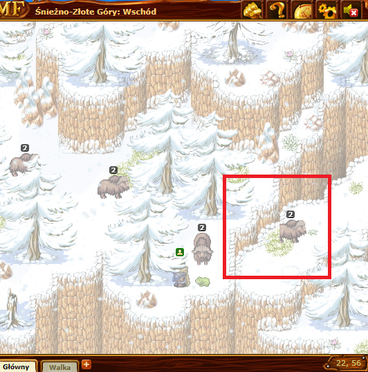 Próbując przejść z tego miejsca na skos (prawo-góra) postać nie wykonuje ruchu, ale pokazywany jest komunikat o zabraniu energii za poruszanie się po śniegu, chociaż energia nie jest odejmowana.