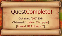 Zawsze gdy gram w gry RPG przyjemną dla mnie rzeczą jest właśnie ukończenie questu i wyświetlenie okienka z zdobytym expem, złotem, przedmiotami itd.