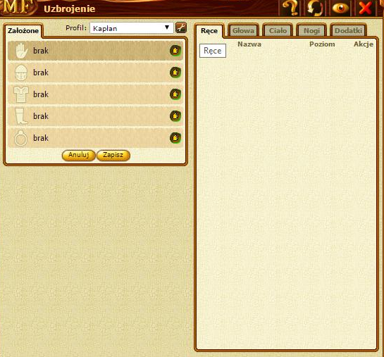 -Ekwipunek: Wojownik dostaje po 2 sztuki broni(przydzielona broń jest zależna od atrów), mag 2 rózgi, oraz każda profesja po 2 sztuki ekwipunku z każdej części ciała, plusy mogą być od +0 do +8.