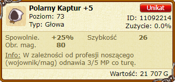 Niby do 1kk, bo -5 cel, ale osobiście bym nie dał za ten itemek więcej niż 500k, bo od dawna pvp na lvlach 10-19 nie istnieje.