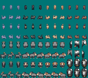 Propozycja wyglądu owcy (na samym dole, druga od lewej - animacja)