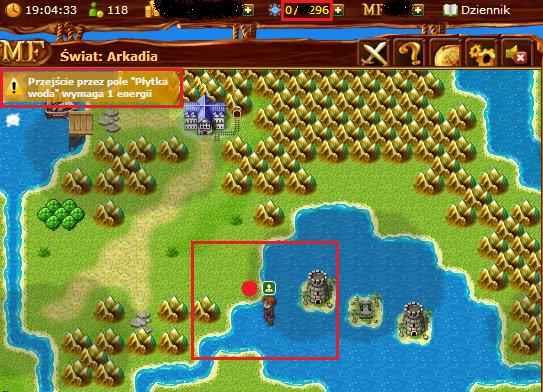 Jeśli nie mamy energii to nie da się przejść na miejsce oznaczone kropką. Wchodząc na to pole zużywamy 1 pkt energii chili schodząc nie powinno zabierać.