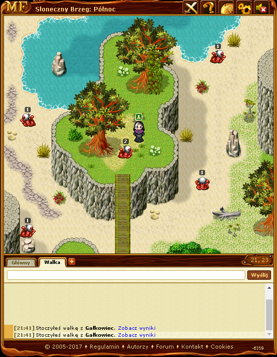 Jak wiadomo w każdej lokacji sąsiadującej z Świat: Arkadia na strzałce przejściowej pisze: Świat: Arkadia. W tym przypadku nie, gdy w Dolinie Szumiących Drzew od strony Eterni gdy się najedzie na strzałkę przejściową pisze: Mapa Świata, nie wiem czy też od strony Dili występuje taki ,,Błąd,. To raczej wina gry, ale podam system operacyjny oraz przeglądarkę: Windows XP, Mozilla Firefox, niestety nie wiem którą wersję posiadam- na pewno nie najnowszą. O to screen: https://img.atelier801.com/0d24f0c5.jpg