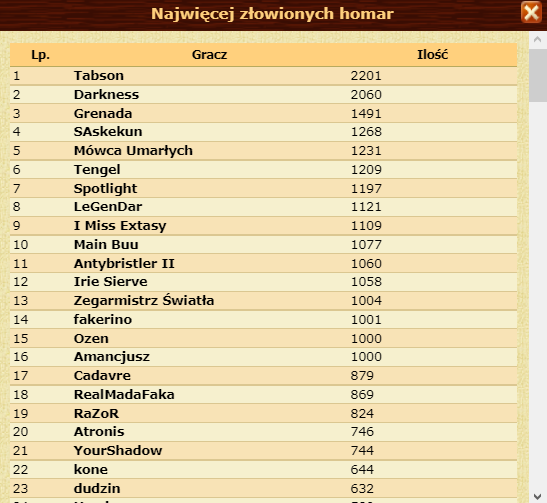 Tablica na łowisku: Ranking złowionych homar (zamiast homarów).