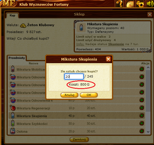 W Klubie Wyznawców Fortuny walutą sklepiku są Żetony Klubowe, tymczasem w okienku koszt za przedmioty podawany jest w złocie (G) zamiast w żetonach (ŻK).