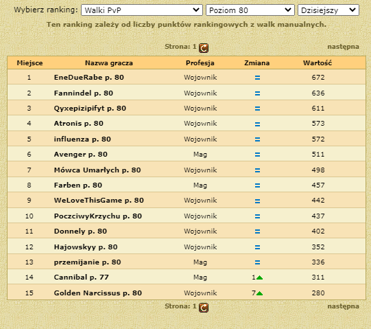 Nie wiem jak wy tam macie na 80, ale na niższych to jest patola z tymi darmowymi statystykami maga i konsekwentnie nerfionym wpływem szczęścia. Równie dobrze moglibyście zrobić oddzielną arenę dla maga i woja.