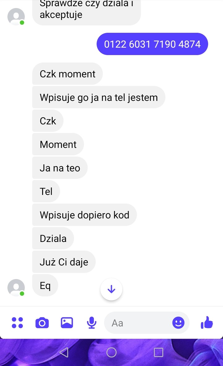 na dowód screeny z konwersacji na mes