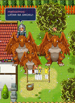 Trochę smoczków, na których jeździłem (Elite knight, jakiśtam koxu i trzeci, mały smok, random XD), Paladyn (dzięki aldona, za skrzydła anioła), Tytan, atakujący Langeburg i Ja, wraz z Nekcią i Artemę