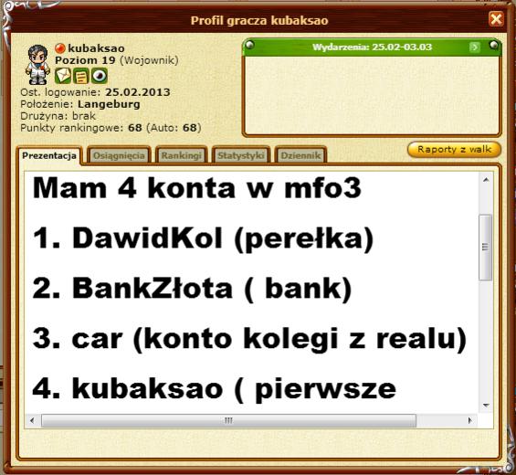 Rozumiem mieć bank, ale to chyba się ma na swoim profilu, a nie na osobnym. Co najlepsze ten "bank" nie jam głównego konta.