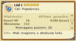 Mam następujące pytanie. Dotychczas (do 21 lvl) używałem zaklęcia ziemia 1 (wbiło się na 5 gwiazdkę) i pocisk magiczny 1 (4 gwiazdki). Czy jak kupie teraz ogień 2 albo jakiś inny żywioł 2 to będę na tym stratny? tzn będę zadawał mniejsze obrażenia niż zadawałbym z ziemi 2 ? I jeszcze jedno ; jakie zdolności gemy i czary opłaca mi się kupić ?