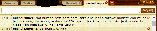 Gracz próbuje wyłudzać login i hasło pod pretekstem doładowania konta 60mf.