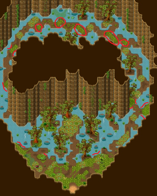 Wszystkie porośnięte trawą i graniczące z wodą, na mapie zaznaczyłem tylko PRZYKŁADOWE miejsca, plus nie jestem pewien, czy ta trawa porośnięta kwiatami też się wlicza.