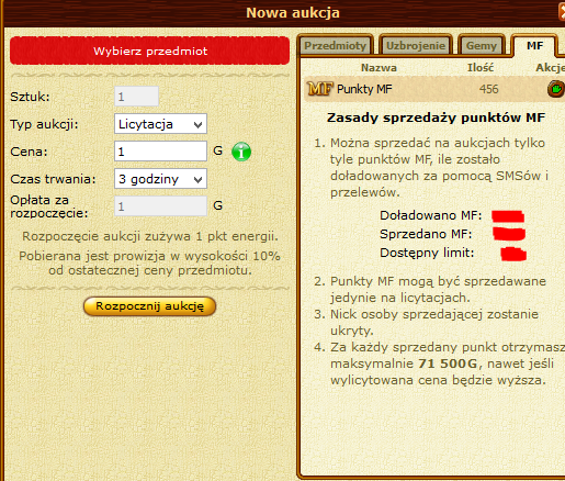 Dreamer, gdy wystawiasz punkty MF na targ masz opisane zasady: