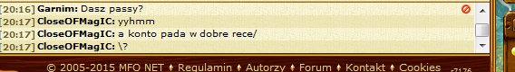 Mam sprawę do was bardzo poważną ,ponieważ wchodzę rano sobie ma mfo a tu nic nie mam miałem osiem mf i pełno eq nq 65 lvl co to ma być ,a nikomu nic nie dawałem żadnego hasła ani nic