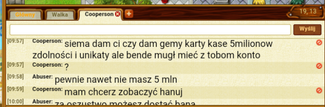 "13. Każde konto w grze jest własnością Usługodawcy, który użycza je do wyłącznego korzystania osobie, która je utworzyła. Zabroniona jest sprzedaż kont, jak również przekazywanie lub udostępnianie ich innym osobom. Z konta może korzystać jedynie osoba, która je utworzyła."