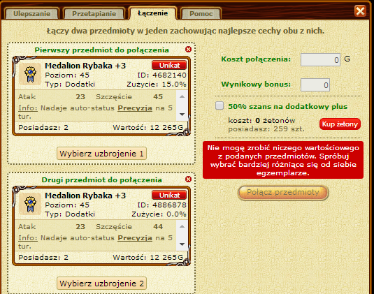Mały problemik z kowalstwem. Jaki medalion miałbym wsadzić jeśli kowal nie chce mi tych połączyć ?Załącznik 1547