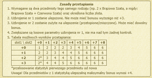 tutaj masz dokładnie rozpisane na jakiej zasadzie podbijane są przedmioty w przetapianiu, tabelka jest w zakładce pomoc u kowala